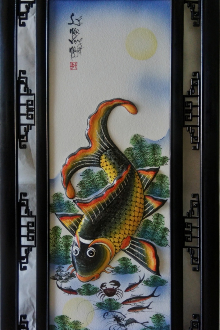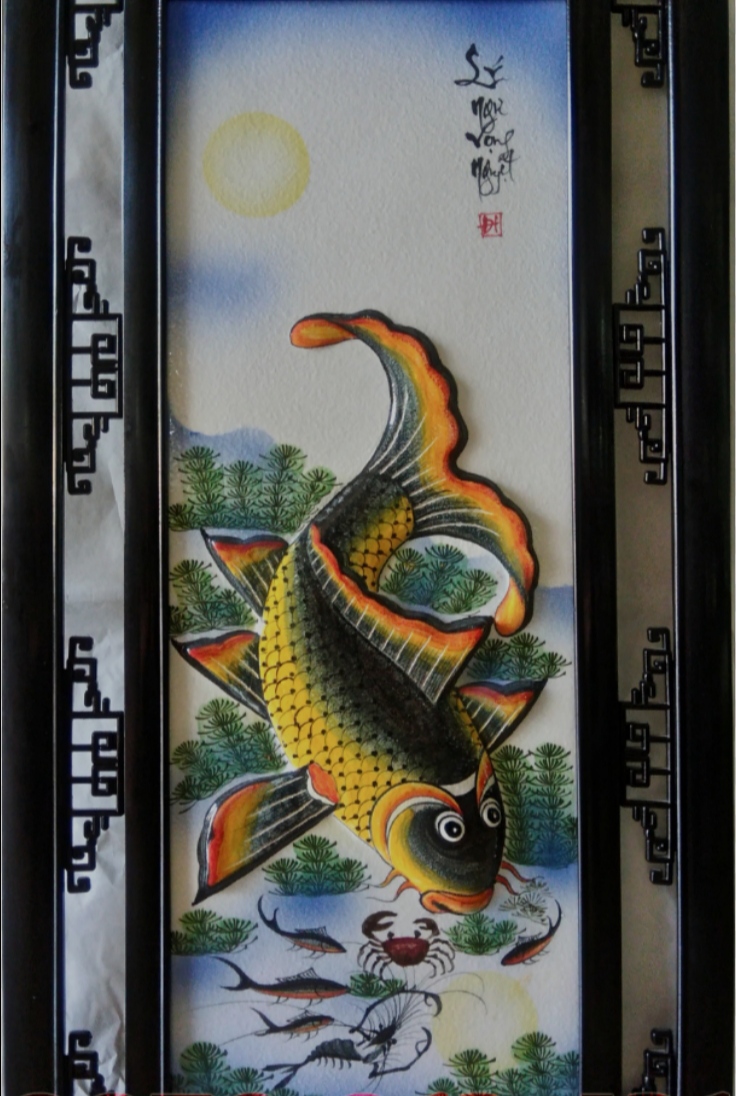 Bất kể bộ tranh này được làm bằng chất liệu gì thì vẫn mang những ý nghĩa tốt đẹp. Cá chép là hiện thân của sự may mắn và tốt lành theo tín ngưỡng người Việt. Trong tiếng Hán, cá chép đọc là “Lý Ngư” có phát âm giống giống với từ Hữu Dư. Mang ý nghĩa giàu có, có của ăn của để.